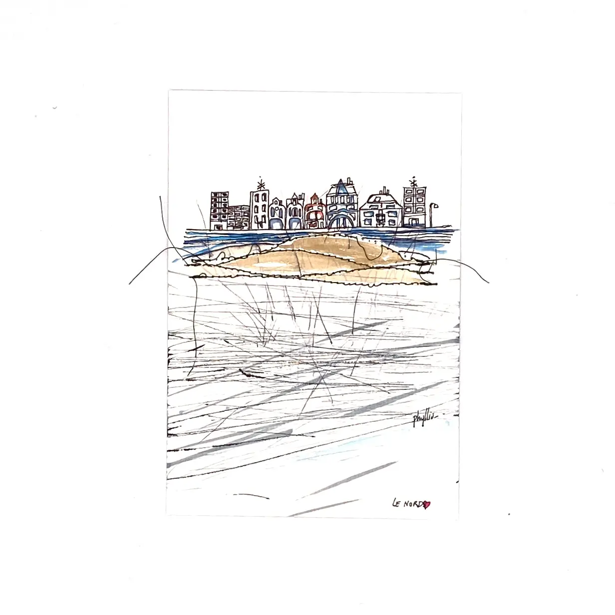 Création sur papier dessiné et cousu, un travail en plusieurs étapes de part les finitions, détails . Travail miniature. Ce qui donne avec ses couleurs un effet étonnant et le relief de la couture. Suivant sa complexité de coudre avec plusieurs fils de couleur