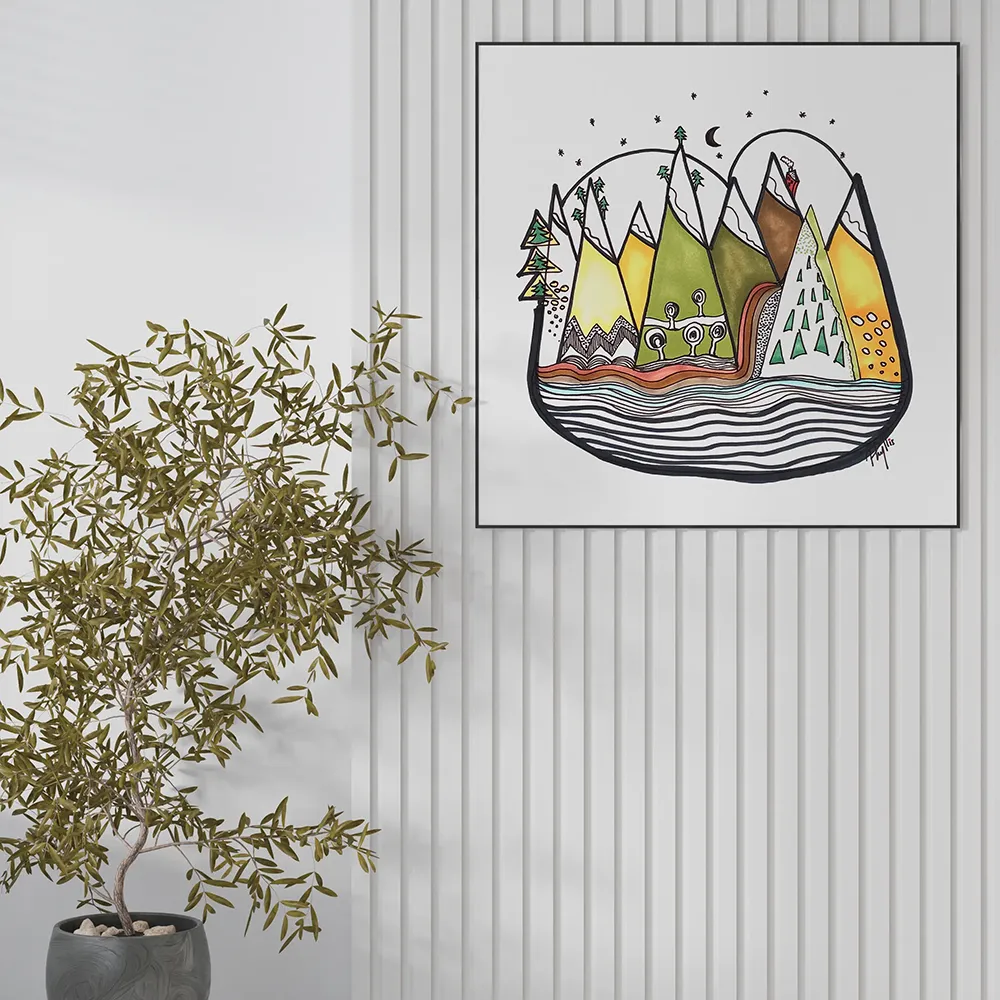 Création sur papier lisse blanc 250 gr aux marqueurs acryliques direct, avec ses formes géométriques tout en couleur.