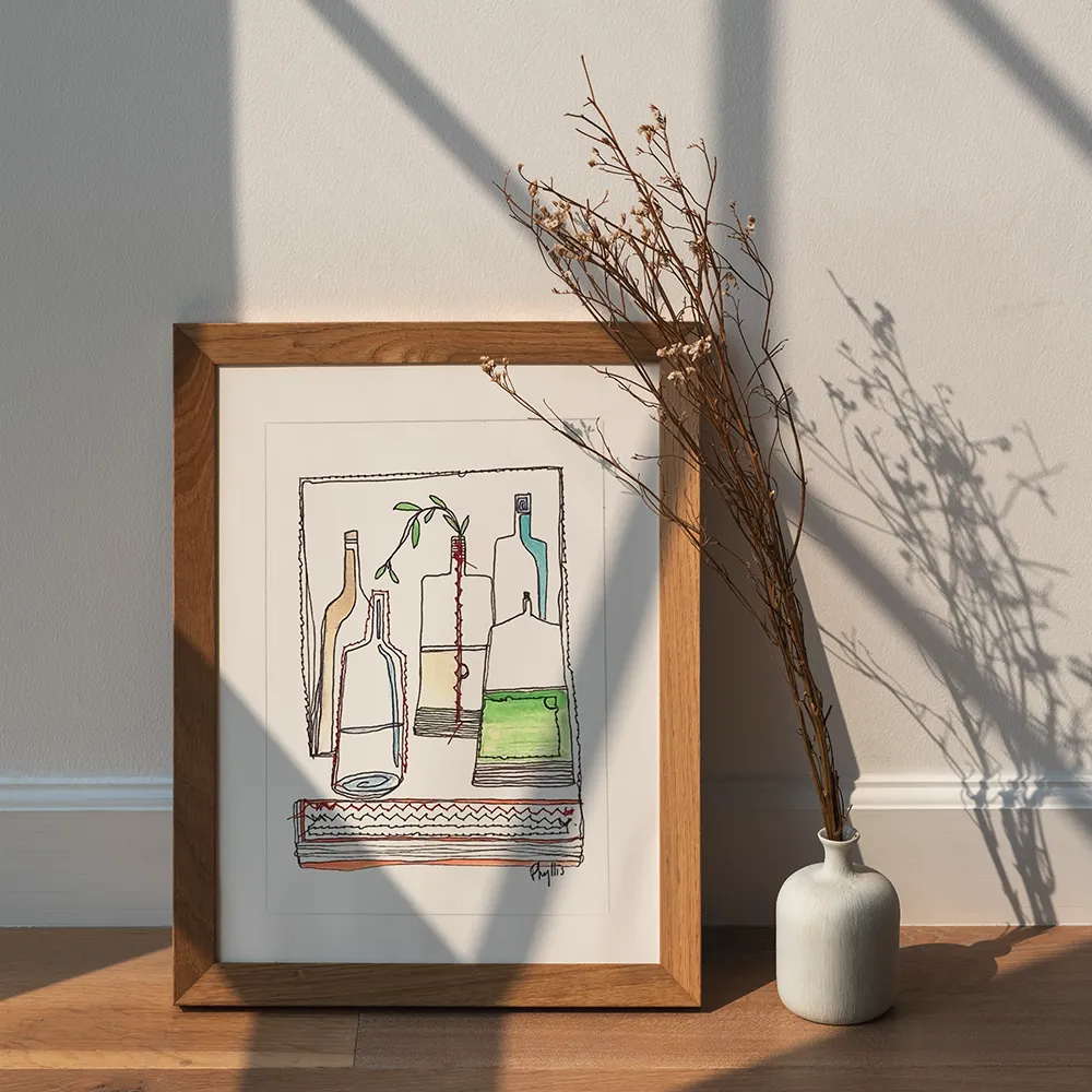 Création sur papier dessiné et cousu, un travail en plusieurs étapes de part les finitions, détails . Travail miniature. Ce qui donne avec ses couleurs un effet étonnant et le relief de la couture. Suivant sa complexité de coudre avec plusieurs fils de couleur